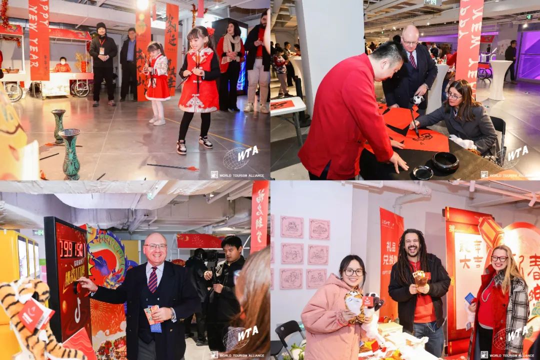 除正式仪式部分外,此次招待会还安排了模拟飞行、微缩中国庙会和非遗展示等环节,在现代科技和传统文化共同营造的氛围中,与会的中外嘉宾“飞越”了中国百余个知名旅游景点,体验了中国传统新春佳节的民风民俗。