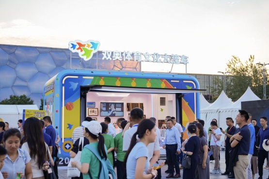 由北京奥促中心精心设计的“双奥体育文化大篷车”打卡区,是弘扬奥林匹克精神、传播“双奥”文化的移动展示平台。“双奥体育文化大篷车”现场展示北京2008年奥运会和北京2022年冬奥会的火炬、奖牌、吉祥物等珍贵展品,供游客合影打卡。此外,还设有“双奥”徽章、夏奥特许产品、“双奥”主题图书展示区。“双奥体育文化大篷车”将在今年体育文化节重要赛事与活动现场进行展示,打造“移动的奥林匹克博物馆”。