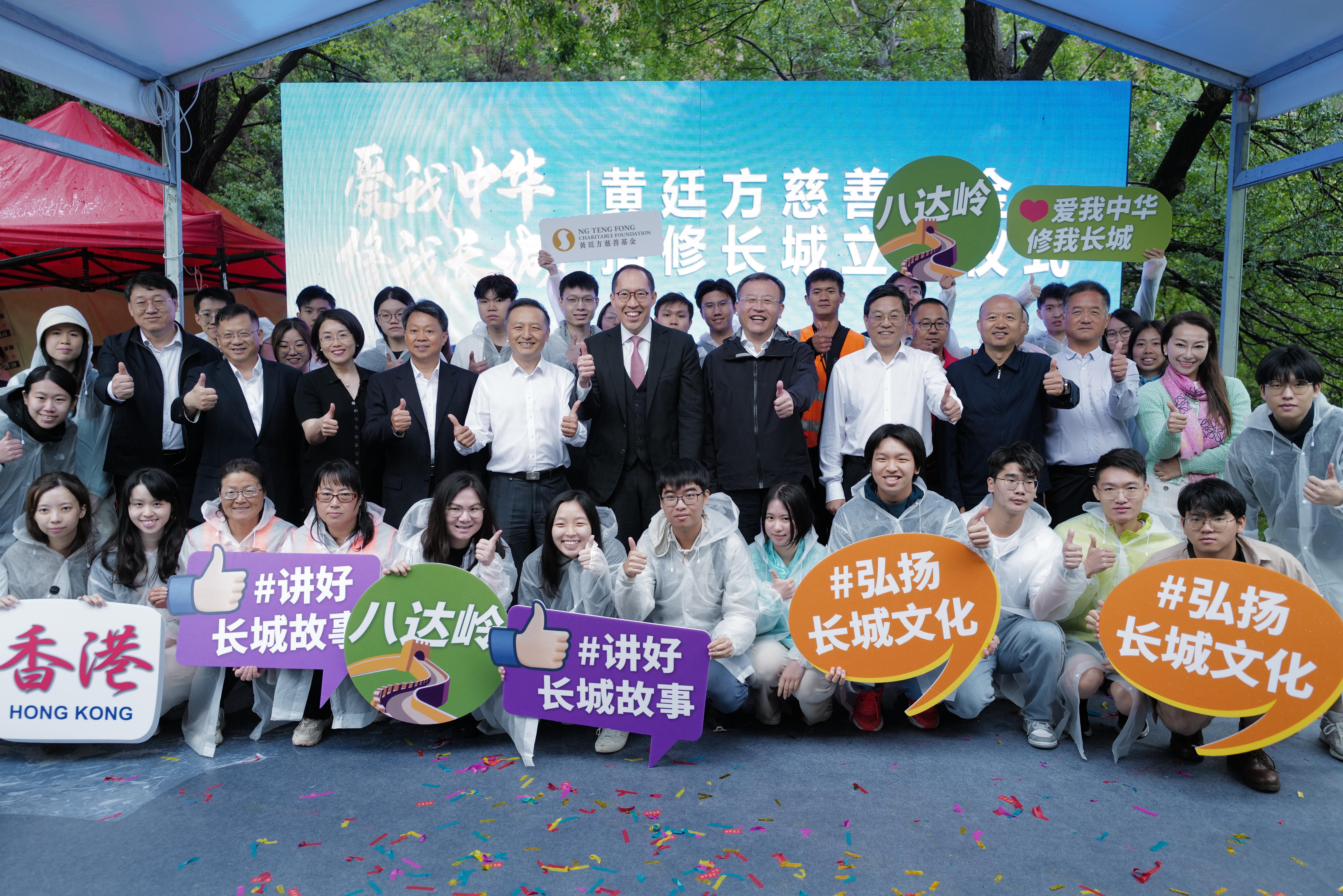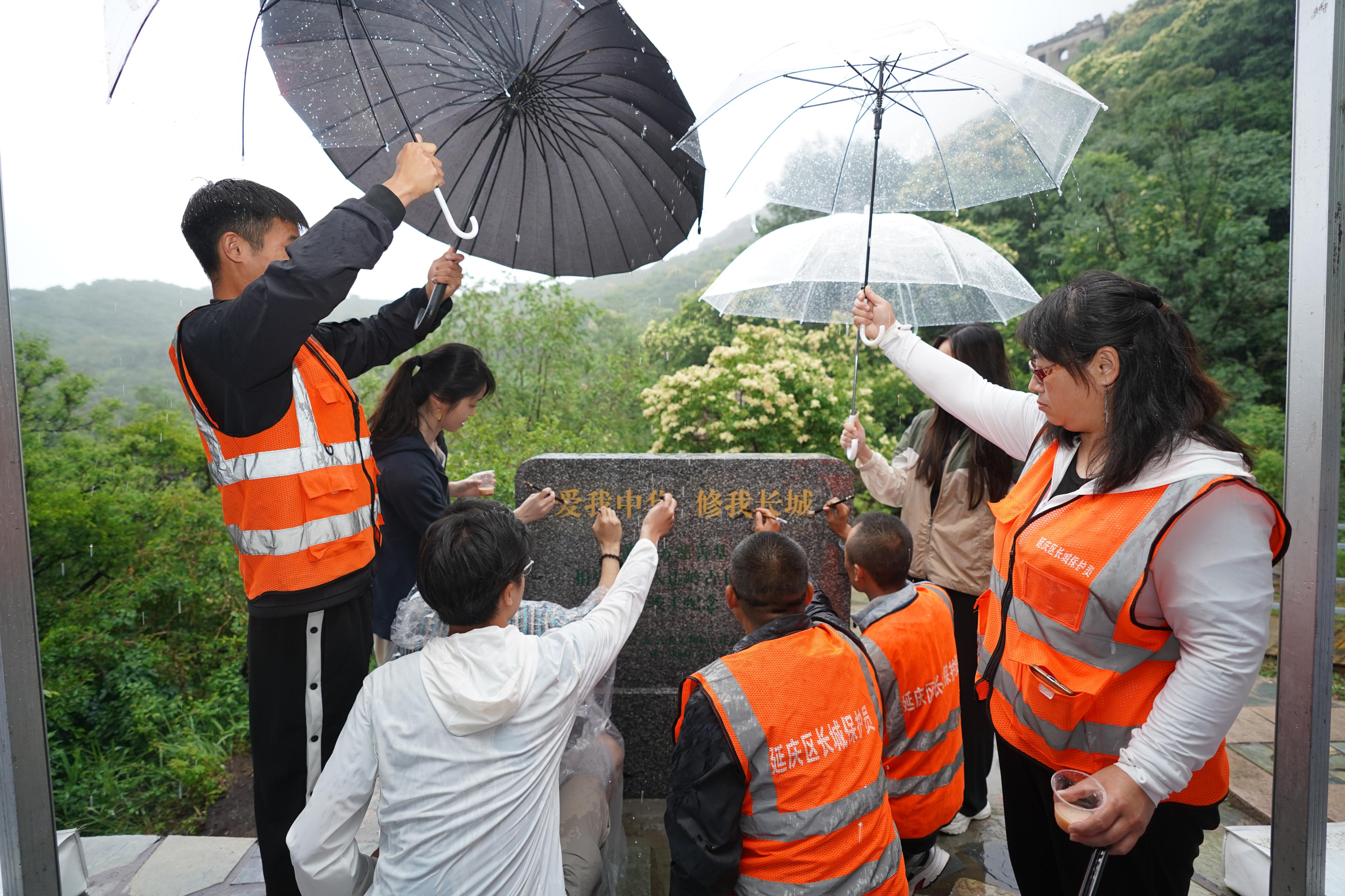 6月7日,作为北京“文化和自然遗产日”和2024北京长城文化节主题系列活动之一,“爱我中华 修我长城”黄廷方慈善基金捐修长城立碑仪式举行。八达岭古长城脚下石峡村村民们和38名来自香港高校的学子共同为纪念碑描金,共绘京港两地保护长城、弘扬长城文化、赓续长城精神的初心。