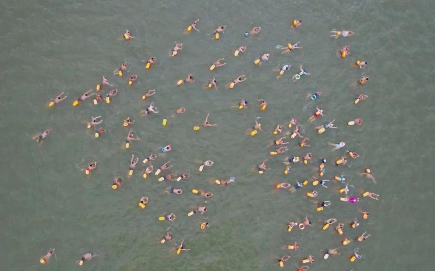 江西南昌水域非常丰沛广阔,眼下,一场千人横渡赣江的活动正在举行。